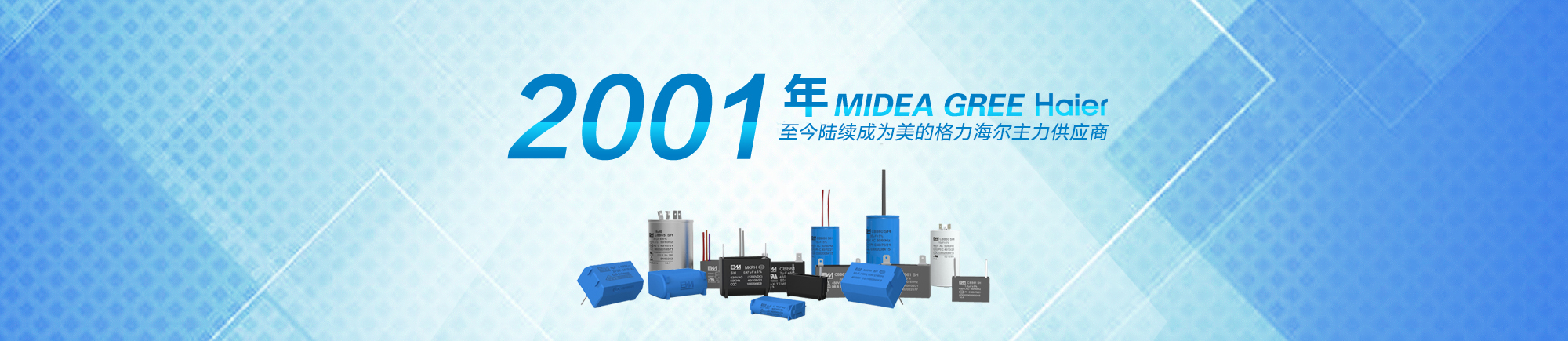 主要生產交流電動機啟動、運行及調速系列電容。在臺扇、落地扇、樓底扇、吊扇、排氣扇、抽油煙機、熱水器、除濕機、麻將機、碎紙機等電器中廣泛應用。
